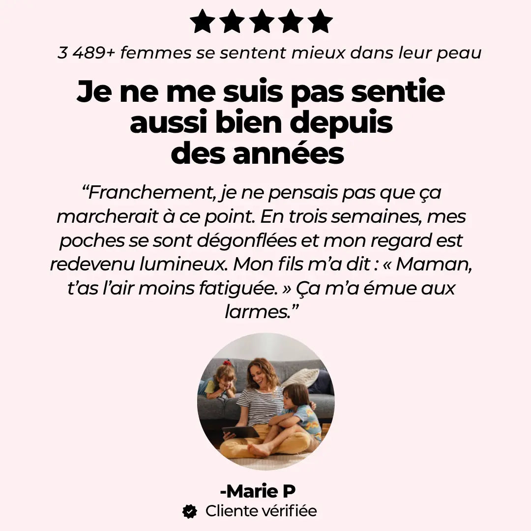 La plupart remarquent un changement dès 2 à 3 semaines : poches moins gonflées, peau plus lisse, regard plus frais.